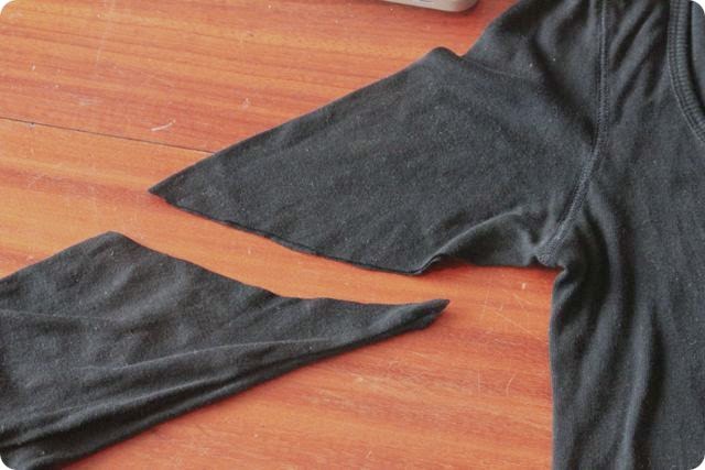 Tşörtün kolunu resimde görüldüğü gibi verev olarak kesip ayırdıktan sonra kalan kısımda birer cm. kadar kesikler oluşturuyorsunuz. İşlem bu kadar basit ve sonuç harika değil mi?
