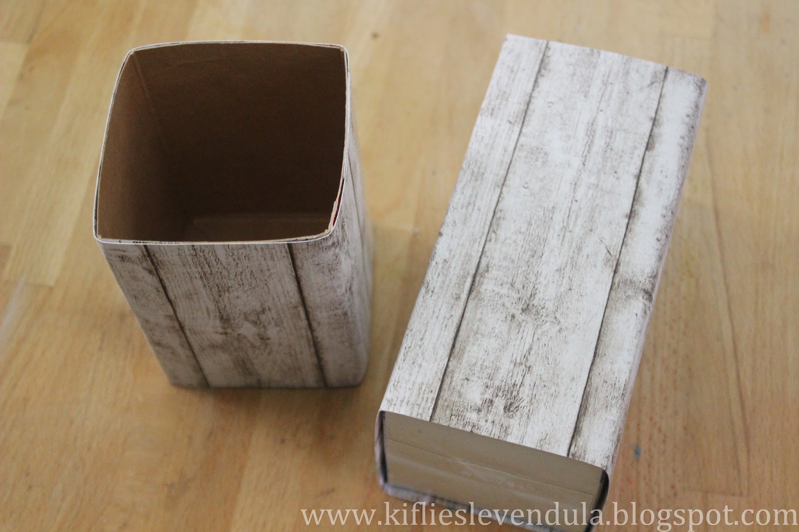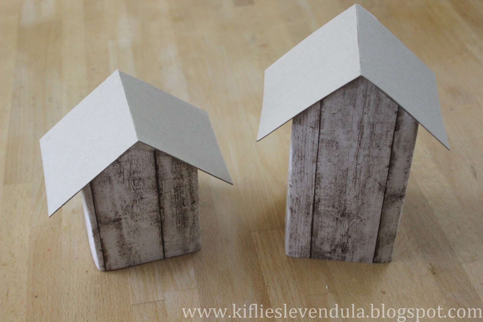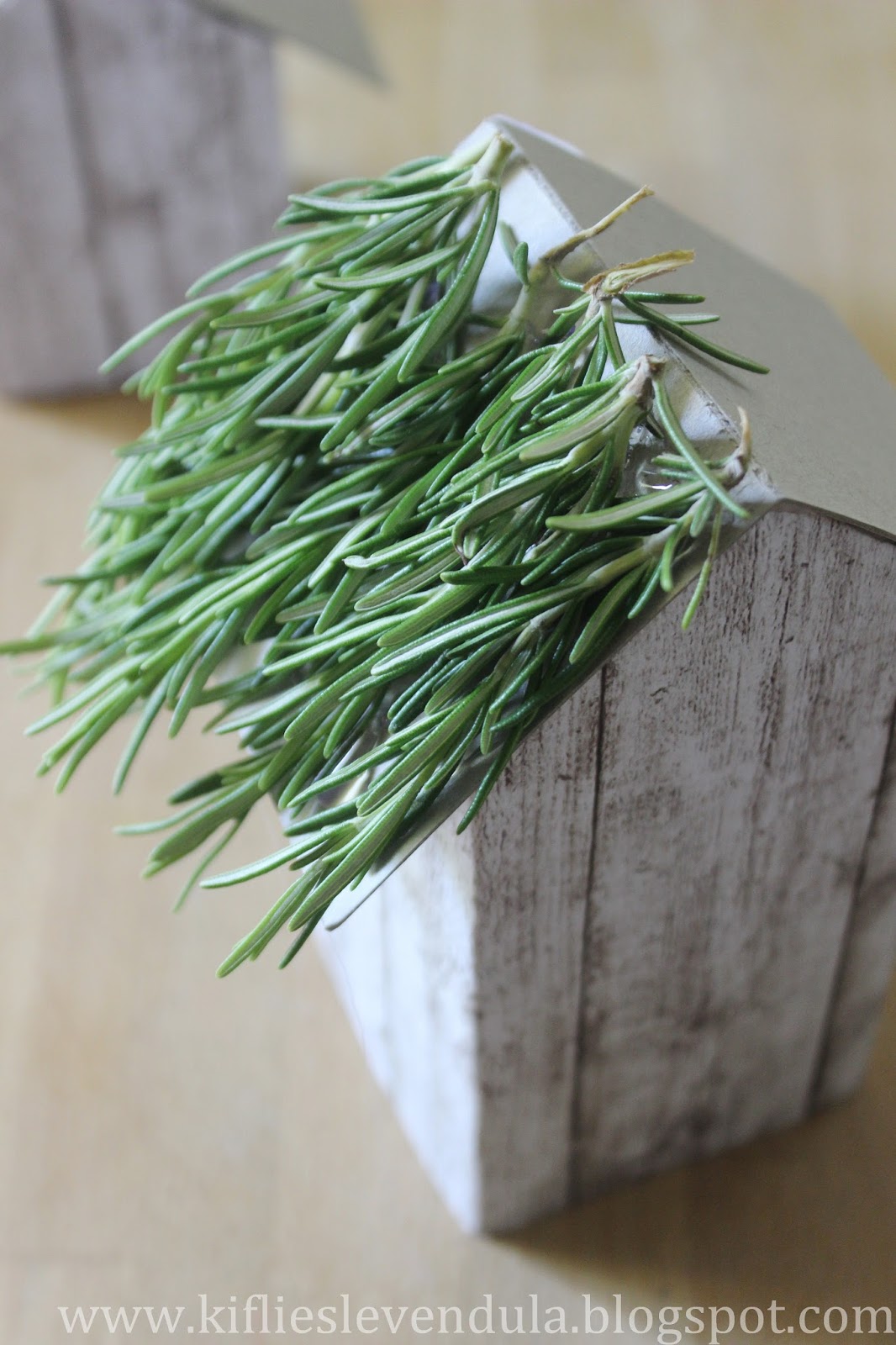 Karton süt kutusundan yapılan bu dekoratif minyatür evin yan yüzleri için ahşap desenli kağıt, tavanı için kalın karton, çatı için lavanta ve biberiye dalları, kapı ve pencere için ise ahşap parçalar kullanılmış. Bu tatlı geri dönüşüm fikrinin diğer detaylarını görmek için buraya bakabilirsiniz.